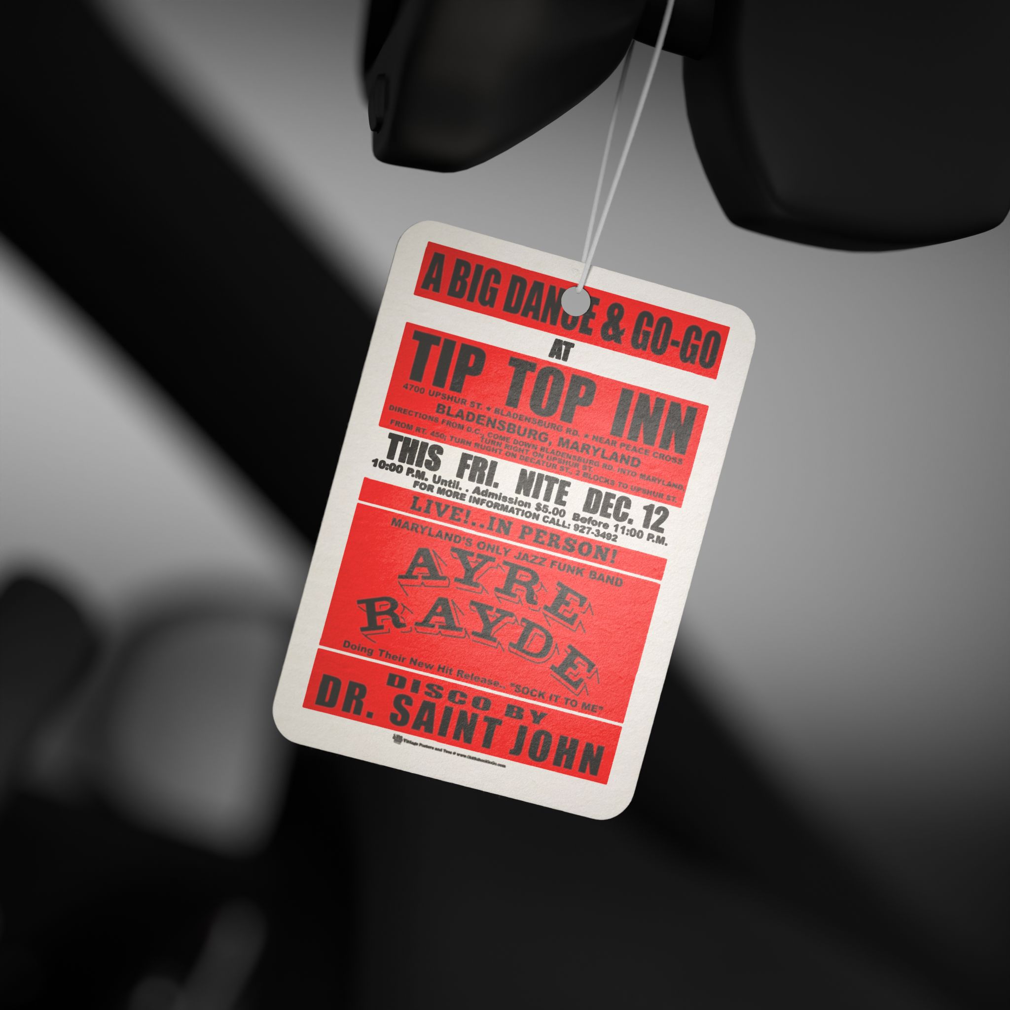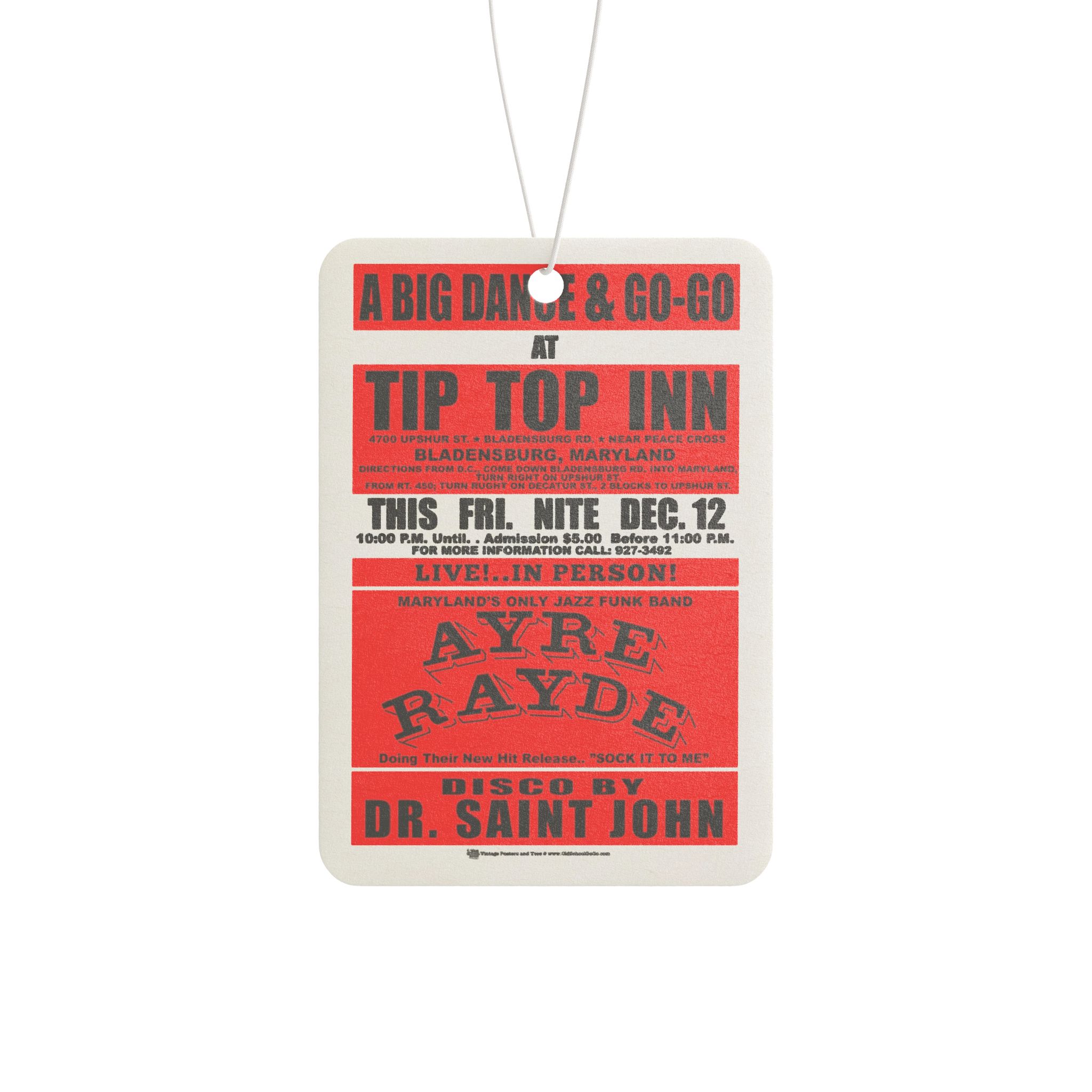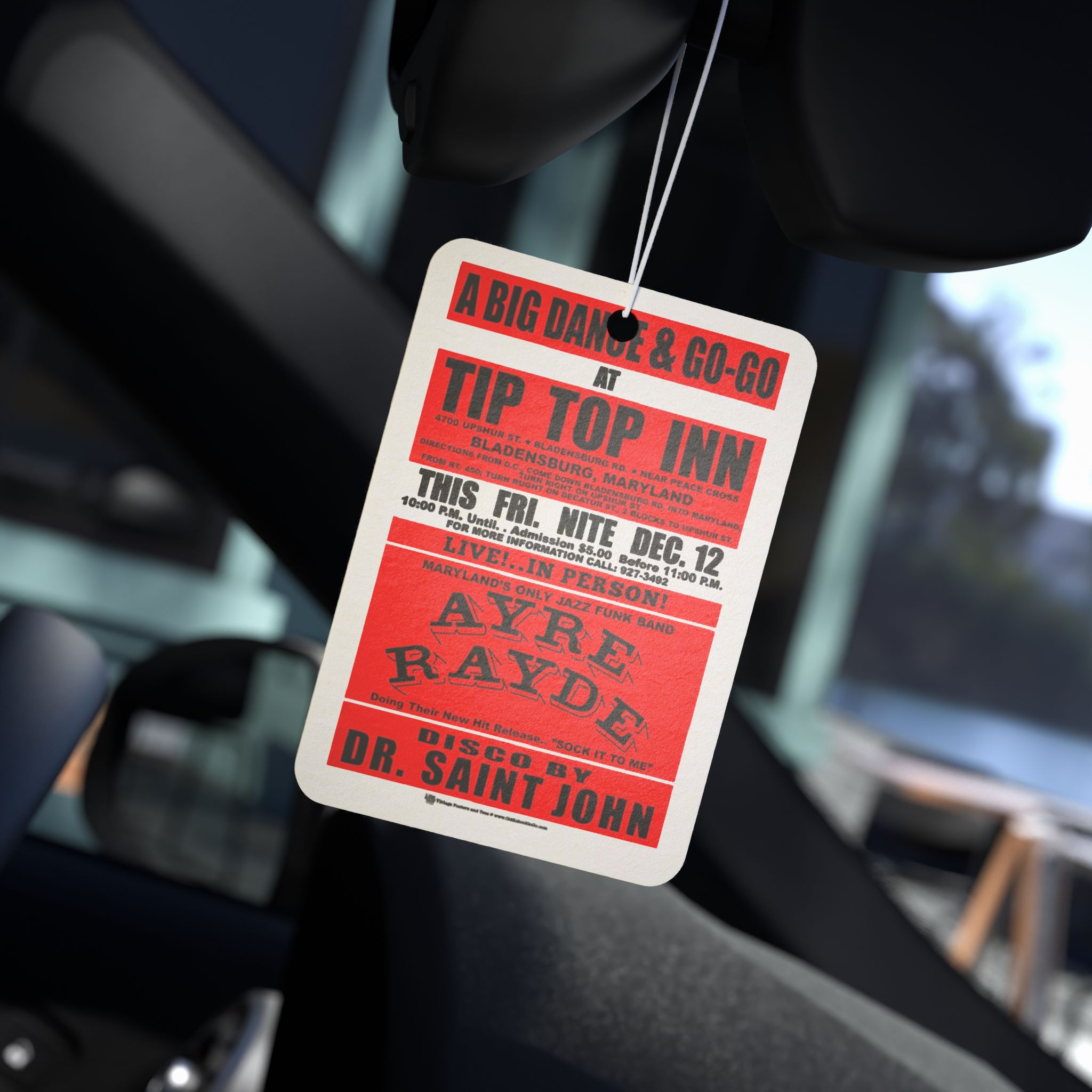 *Air Freshener – Tip Top Inn – Ayre Rayde – Pine, New Car, and Black Ice! Red Print