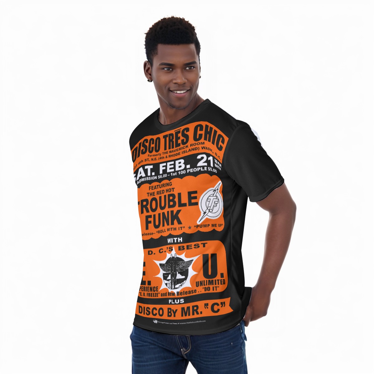 *Tee – Full Print – Disco Tres Chic – Trouble Funk & EU – Orange Print on Black