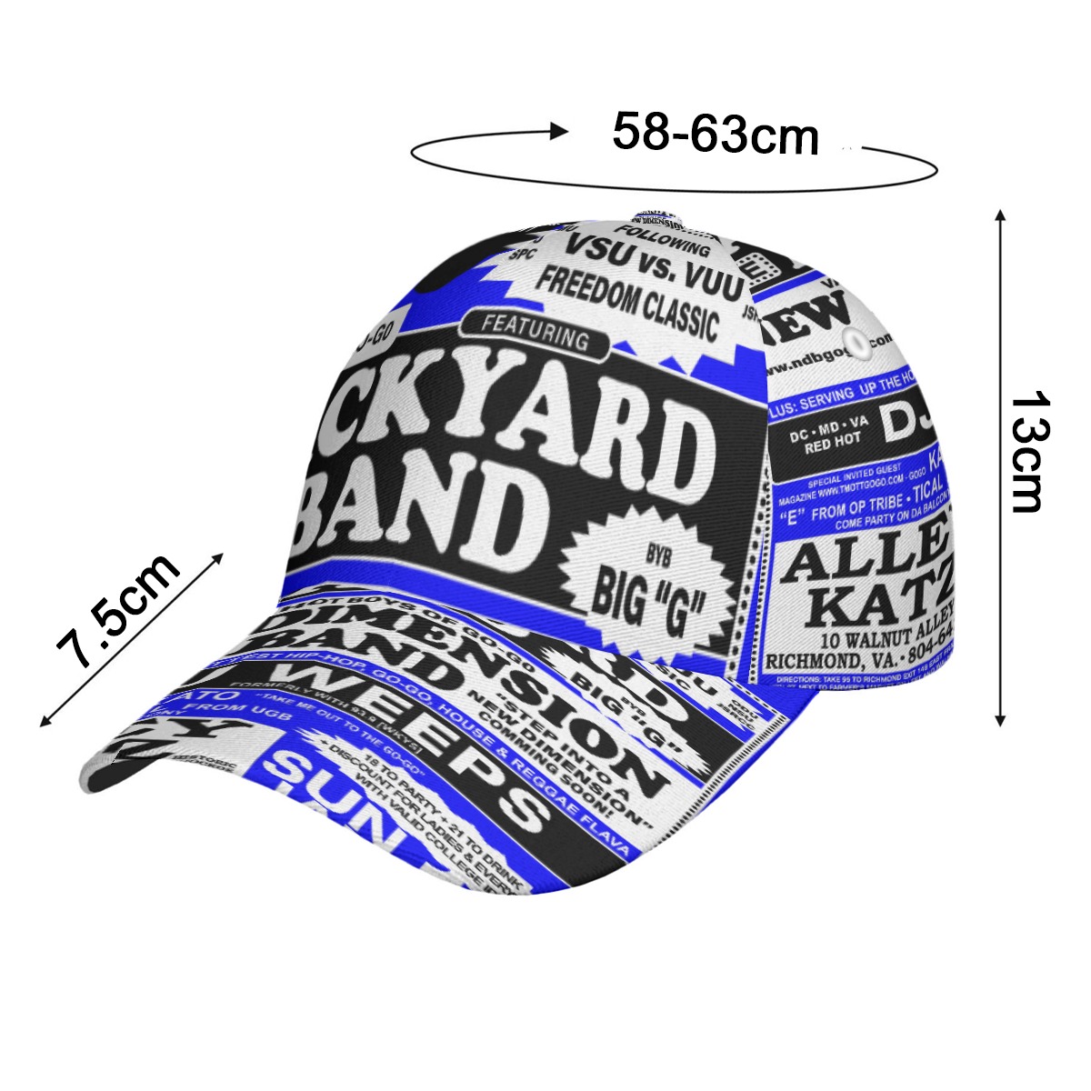 *Baseball Hat – Alley Katz – Back Yard & New Dimension – Black & White Print on Electric Blue