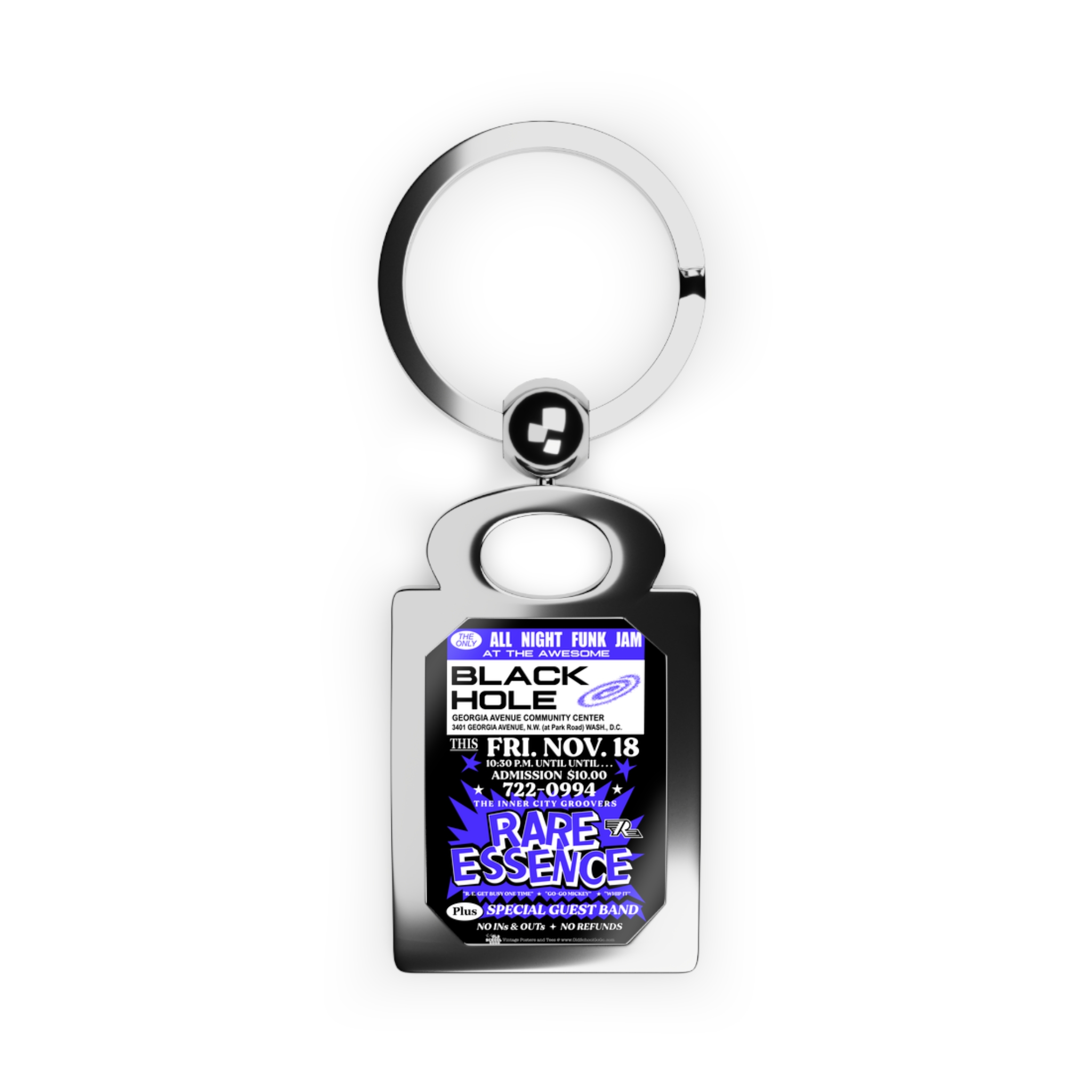 Keyring – Black Hole – Rare Essence – Electric Blue w/Black Background