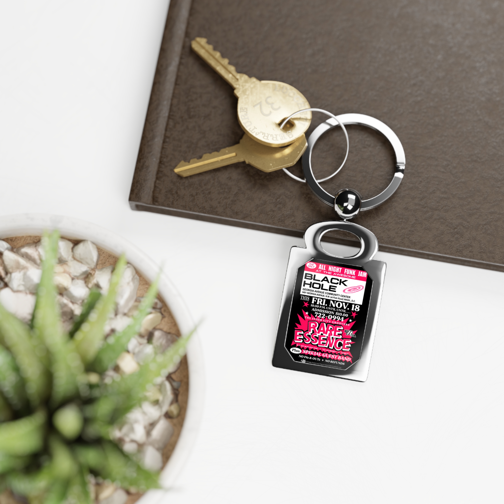 Keyring – Black Hole – Rare Essence – Magenta w/Black Background