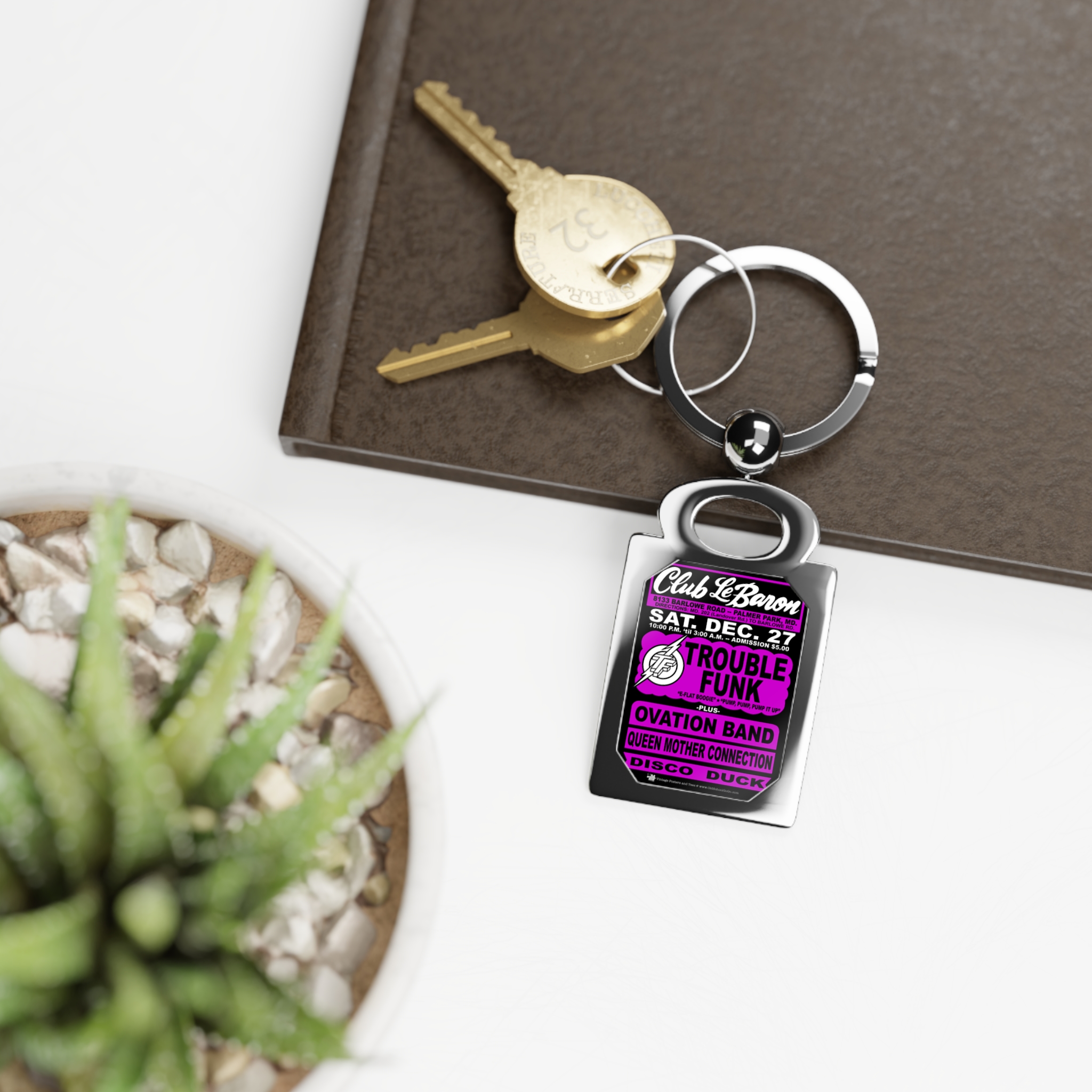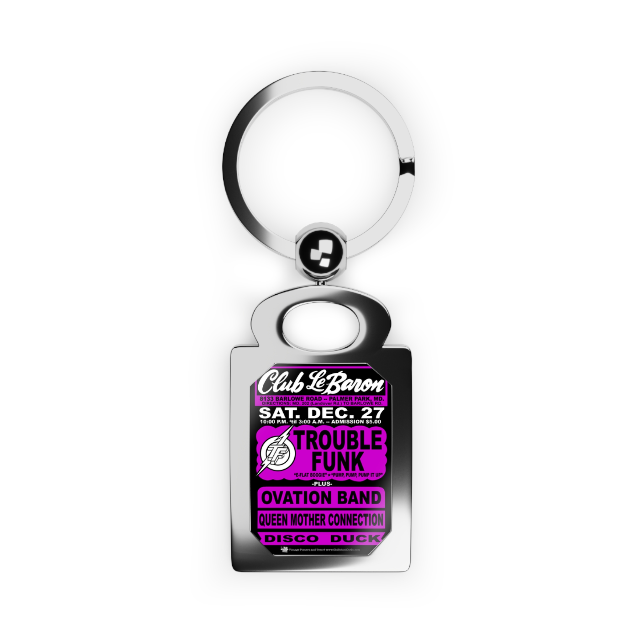 Keyring – Club Lebaron – Trouble Funk & Ovation – Purple Magenta w/Black Background