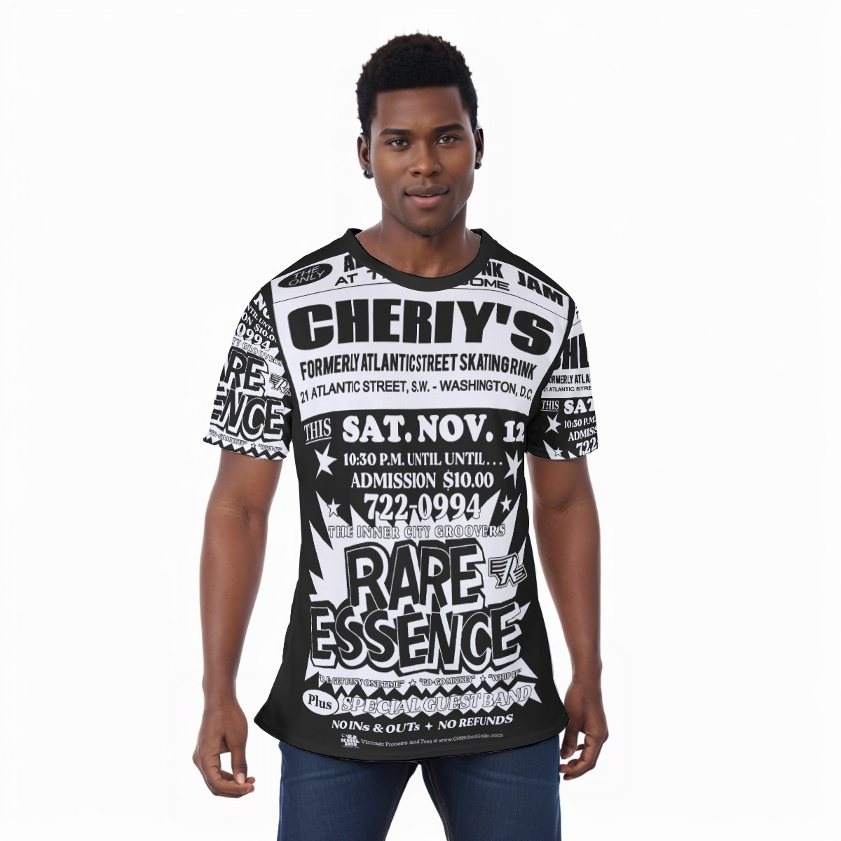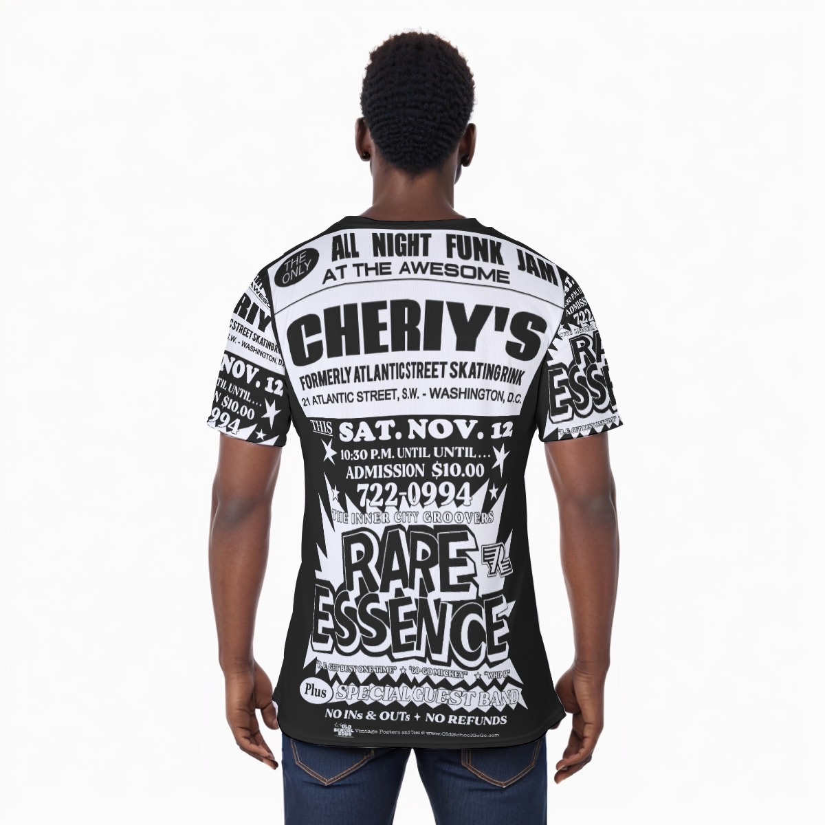 *Tee – All Over Print (Front & Back) – Cheriy’s – Rare Essence – White on Black