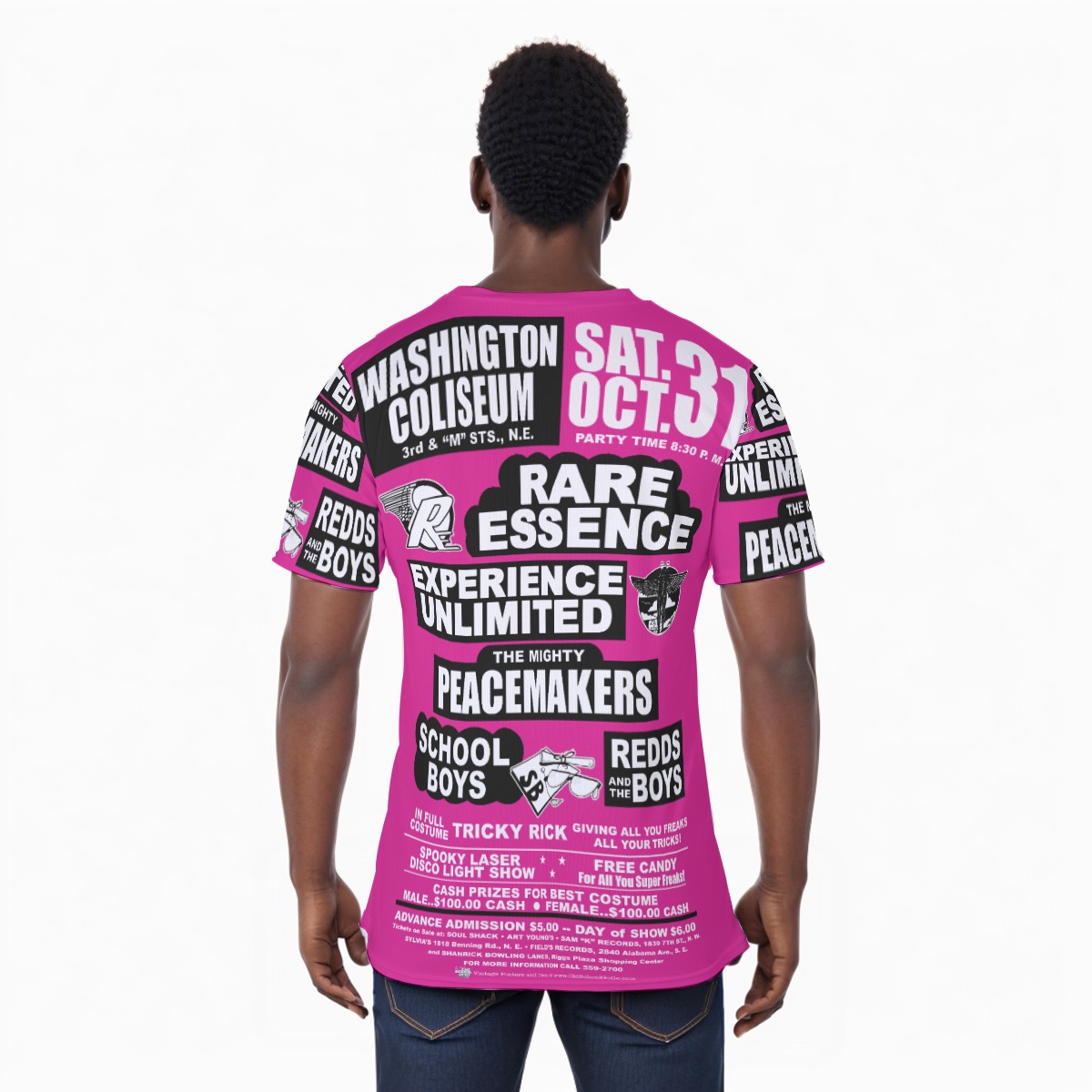 *Tee – All Over Print (Front & Back) – Washington Coliseum – RE, EU, PeaceMakers, Redds & School Boys – Black Print (White Letters) on 11 Color Options