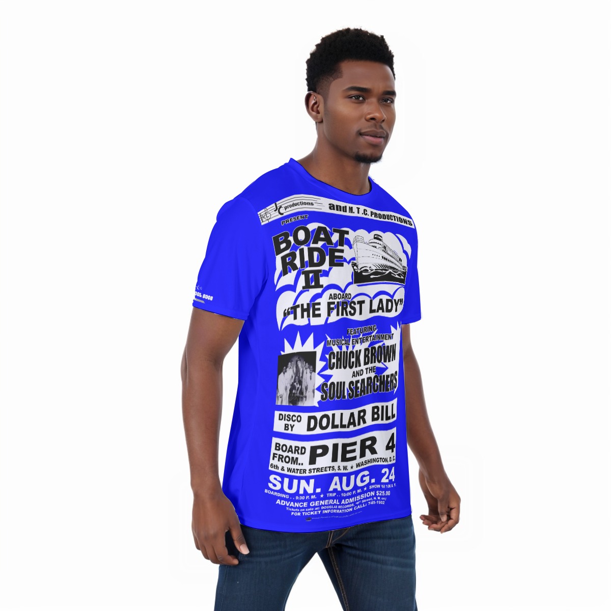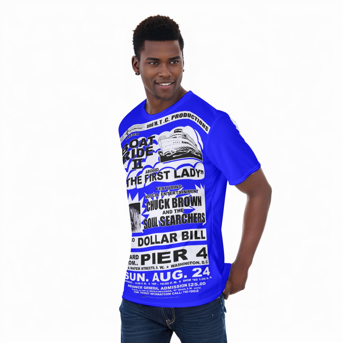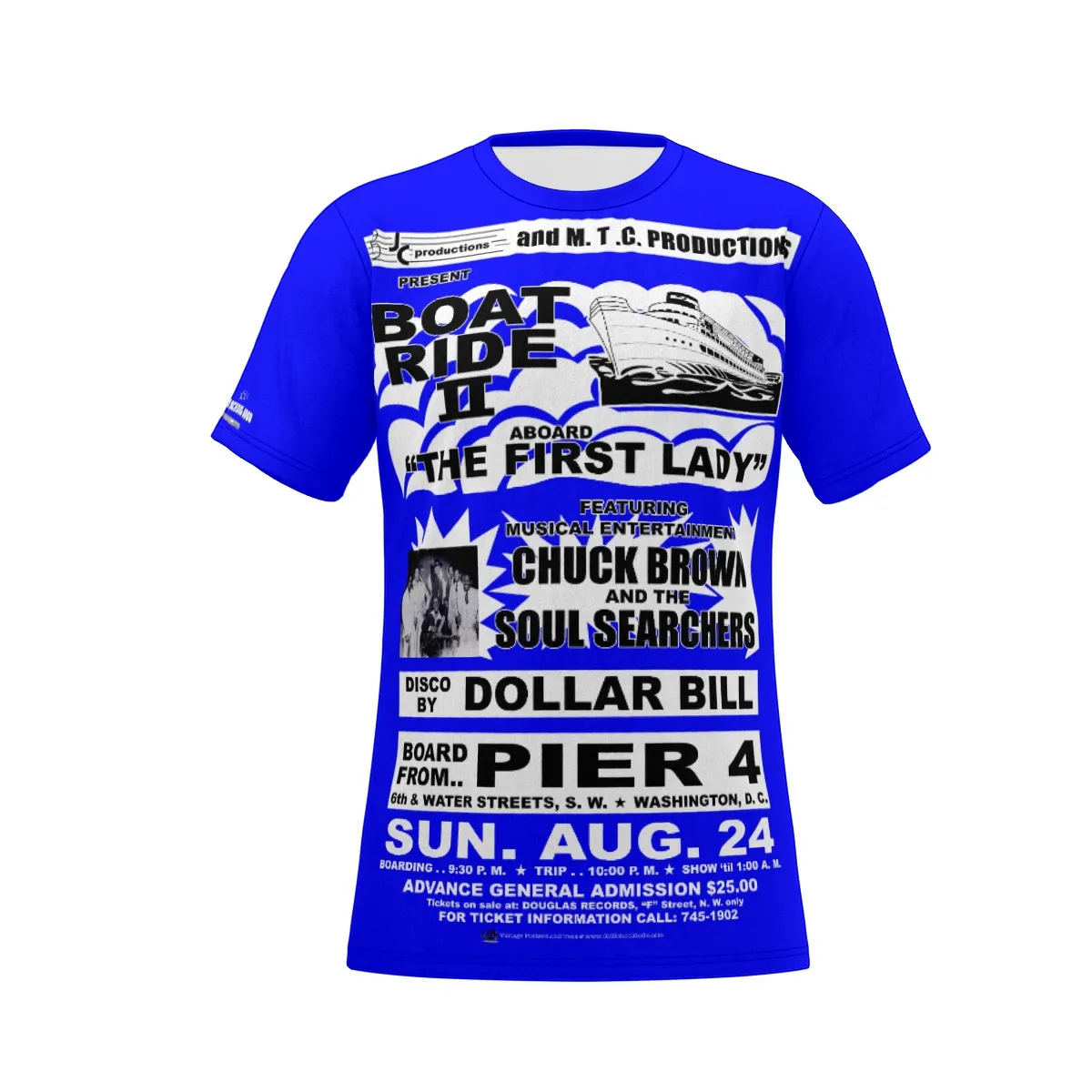 **Tee – Full Print – Boat Ride – Chuck Brown & The Soul Searchers – Black & White on Electric Blue