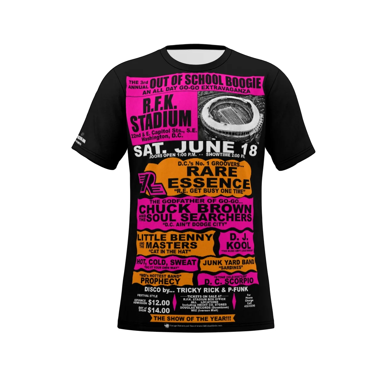 *Tee – Full Print – RFK Stadium – RE, Chuck, Benny, Junk, Hot Cold Sweat, Prophecy – Orange & Pink on Black